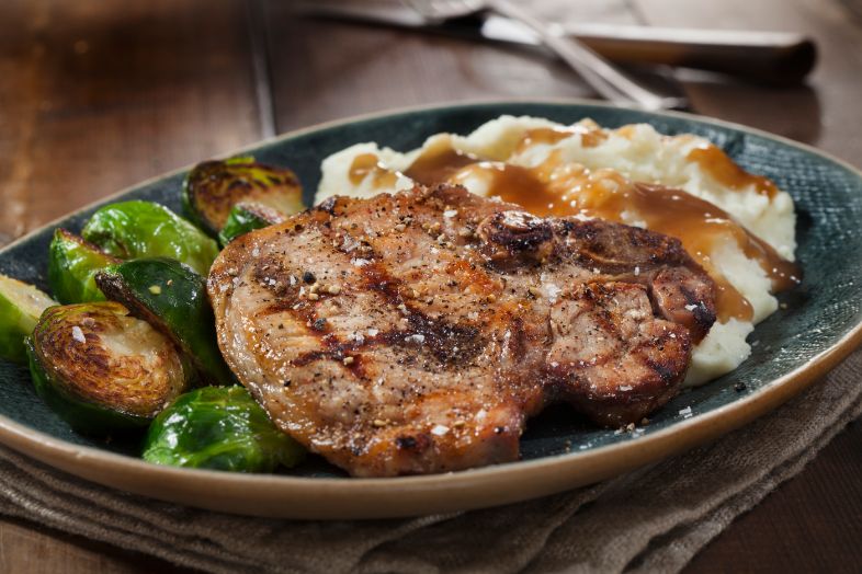 Pan-fried, thick-cut, bone-in pork chops that are perfectly seasoned are the reason for after-work traffic jams. It's a well-known fact. Pork chops hold flavor well and elevate the rest of the meal too. Our pork comes from Alberta raised animals. We only use the center cut portion to ensure each pork chop has some pork tenderloin in it. Its the T-bone steak of pork! Beauty right?!